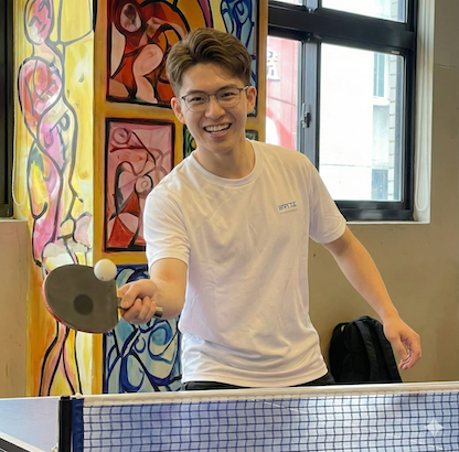 充滿幹勁,擅長將桌球技巧融入趣味訓練,激發學習動力,引導學員能夠主動嘗試與突破。